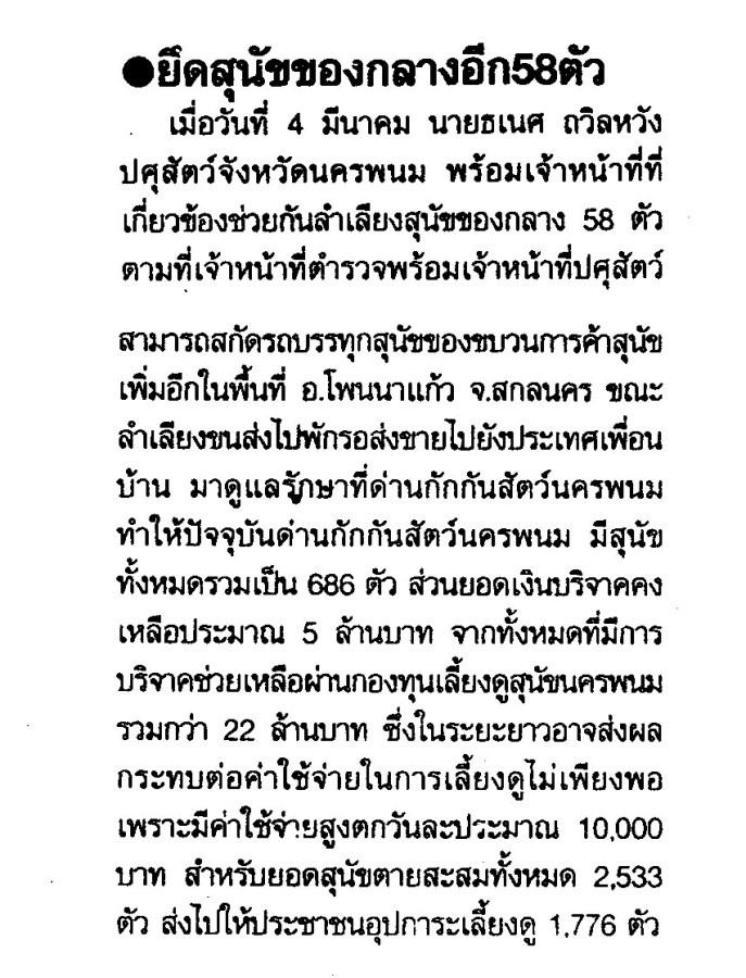 ยึดสุนัขกลางเมือง 58 ตัว