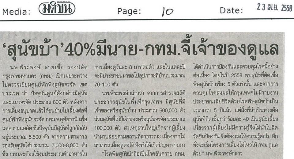 สุนัขบ้าถึง 40% เป็นสัตว์มีเจ้าของ