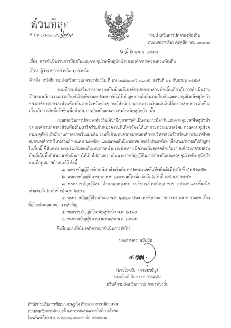 กรมการปกครองส่วนท้องถิ่นสามารถดำเนินงานเกี่ยวกับการป้องกันและควบคุมโรคพิษสุนัขบ้าได้